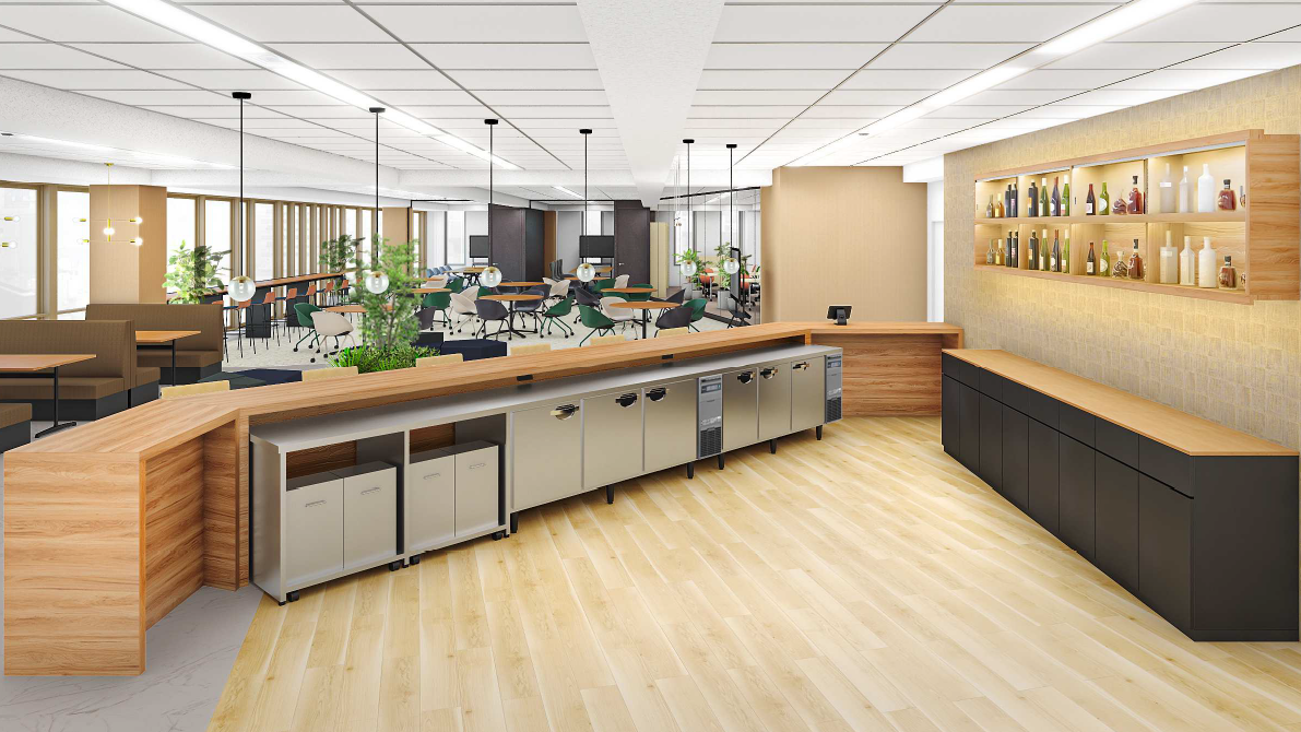 オフィス内に設けたこのスペースは、部署や役職の垣根を越えたコミュニケーションを促進します。イベントやセミナーなど、多目的に利用できる空間として機能します。この場を通じて、社内の結束を高めるとともに、社外との新たなつながりを構築していきます。