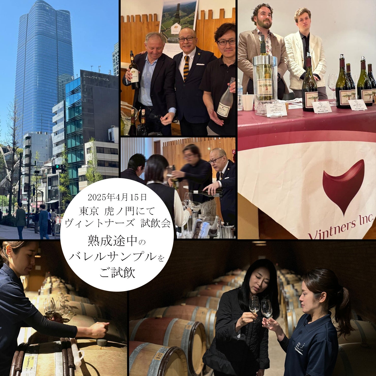 2025/4/15 東京虎ノ門のヴィントナーズ試飲会にて、樽熟成中のバレルサンプルを提供し沢山の受注を頂きました。