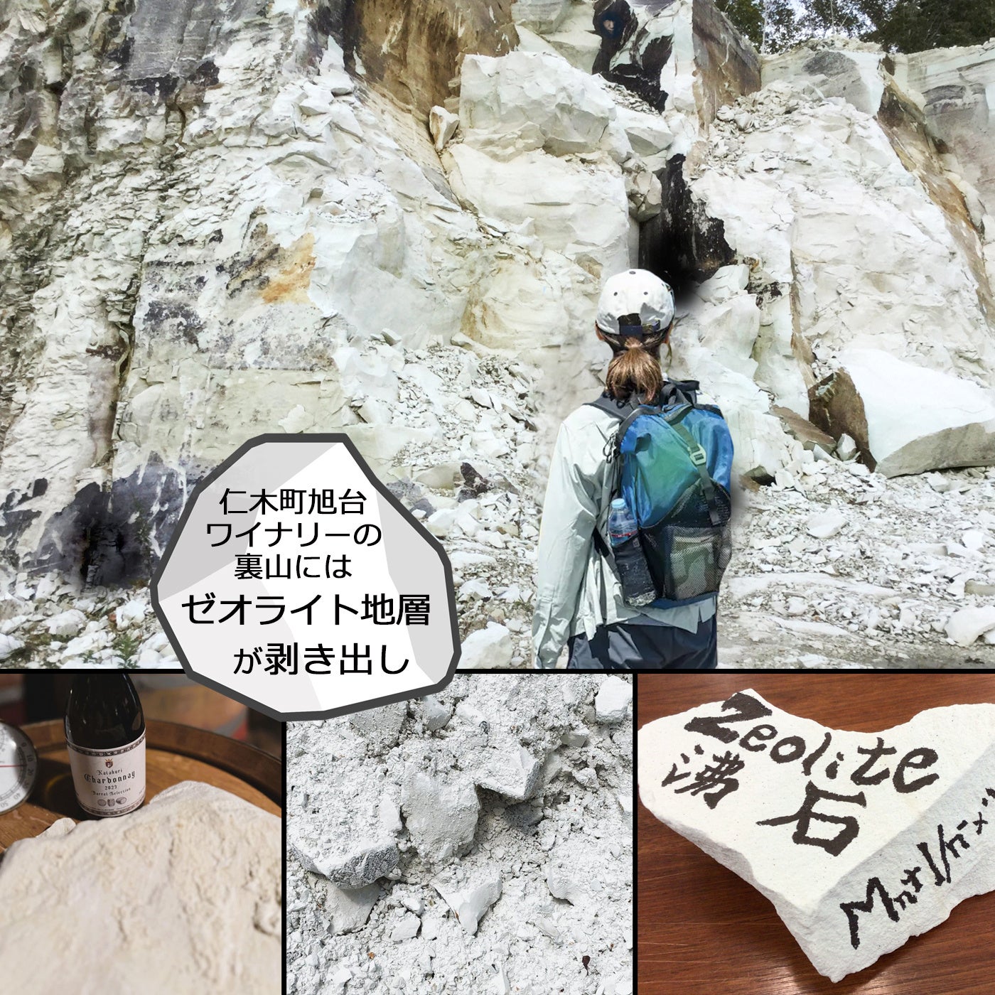 余市郡仁木町旭台 ワイナリーの裏山にはゼオライト地層が剥き出しになっております。