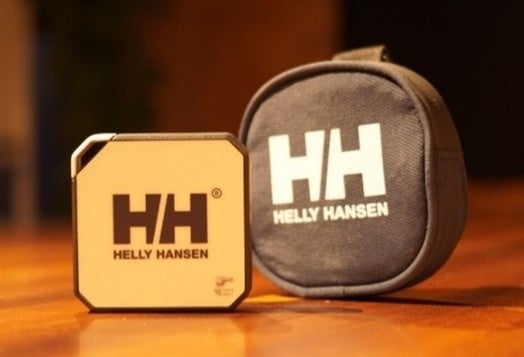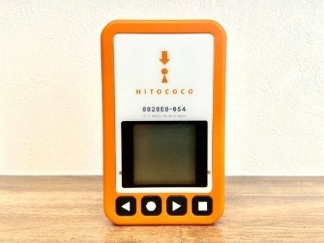 「ココヘリマリン」専用発信機 幅・高さ約5センチ、厚さ約1センチの 携帯型の小型端末