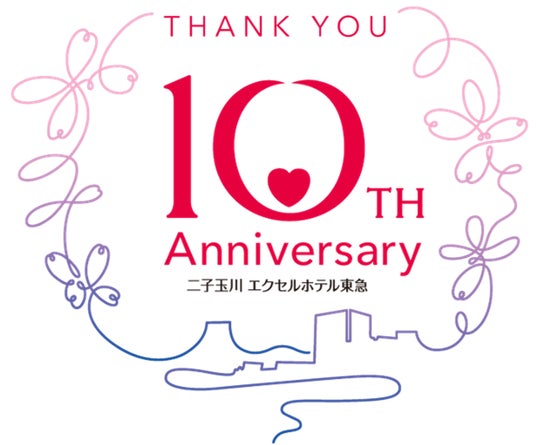 当ホテルは本年、開業10周年を迎え、これまで支えてくださった皆さまへの感謝の気持ちを込めて、記念のロゴマークを制定いたしました。ロゴデザインには、10周年を迎えられたことへの感謝の思いと、二子玉川のエリアを象徴するシンボルツリー「ハナミズキ」をモチーフとして取り入れています。