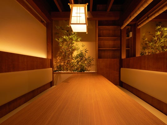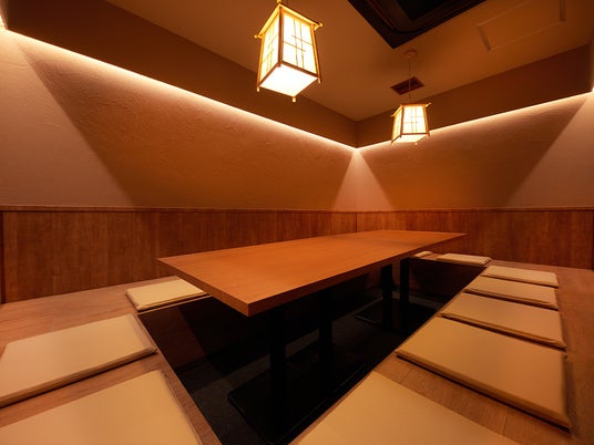 木の温もりと柔らかな灯りが織りなすカウンター席や個室は、デートや接待、記念日にも最適。