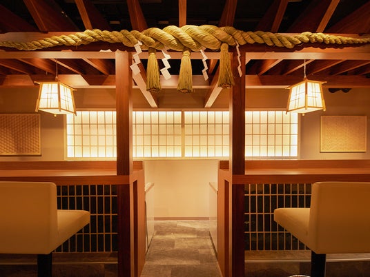 一歩足を踏み入れれば、「非日常を味わえる和空間」。神社を思わせるしめ縄や障子照明が印象的な店内は、落ち着きと非日常を兼ね備えた特別な空間です。
