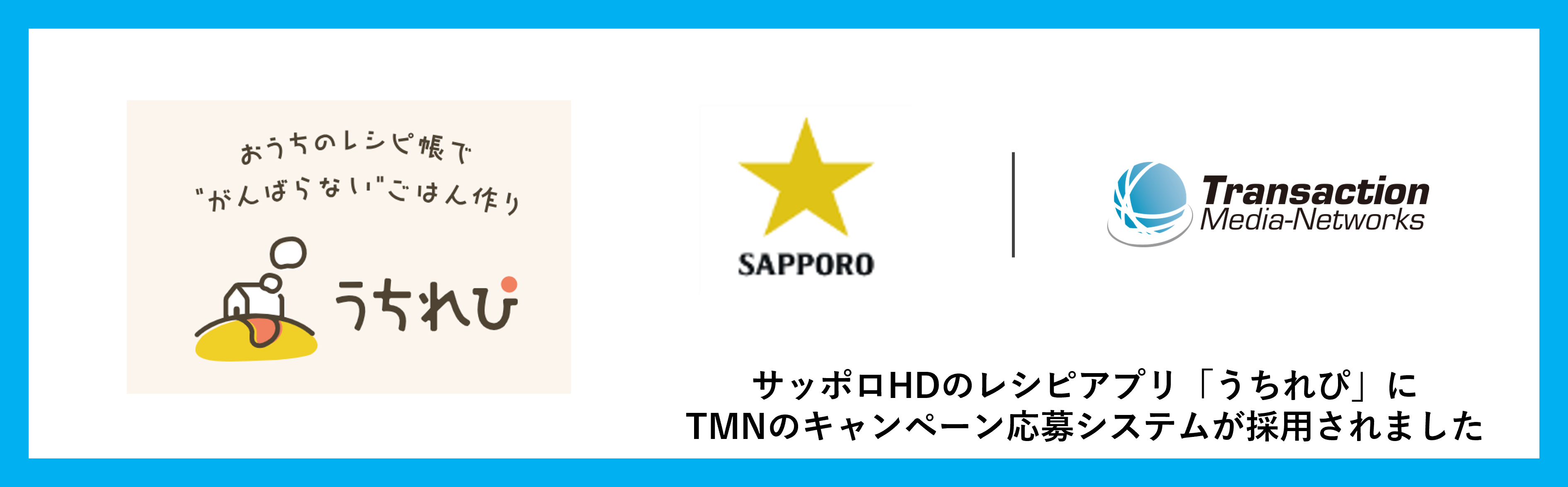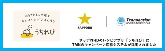 TMN)は、サッポロホールディングス株式会社(本社:東京都渋谷区、代表取締役社長:時松 浩、以下 サッポロHD)が運営するアプリサービス「うちれぴ」にTMN の「キャンペーン応募システム」が採用されたことをお知らせします。