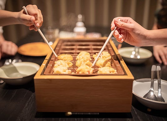 新サービス「~Japanese Home Dining Experience~日本文化体験型インルームダイニング」では、キッチンやダイニングテーブルを備えた当ホテル客室の“食卓”で、「しゃぶしゃぶ」「手巻き寿司」「たこ焼き」など、日本の家庭料理を自分たちで作り、味わう体験をご用意いたします。