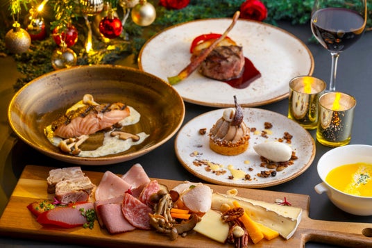 フェスティブシーズンにふさわしい華やかなブッフェとコースオールデイダイニング「カフェ 33」では、クリスマスからお正月にかけての特別なひとときにふさわしい華やかなフェスティブメニューをご用意いたします。薪オーブンで香ばしく焼き上げるグリル料理や彩り豊かな前菜、季節のデザートが並ぶブッフェとコースは、世代を問わずお楽しみいただける内容です。木の温もりあふれる店内で、やわらかな陽光とともに心温まる時間をお過ごしください。