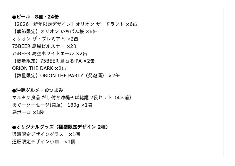 ■オリオン 沖縄じかん お楽しみ福袋 2025-26 松セット・12,000円(税込・送料込み)