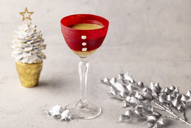 ラウンジ JUNCTION(ジャンクション)とルーフトップバーPLATFORM9(プラットフォームナイン)にて期間限定で登場するカクテル「サンタのキャラメルエスプレッソマティーニ」。?見た目にも可愛いらしいサンタクロースのグラスで、まるでお菓子のような甘い香りのダークラムをベースにしたコーヒーカクテルをお楽しみください。