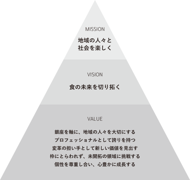 料理のクラフトマンシップとともに日本の食文化の魅力を高め、国内外に発信し、新型コロナの影響を受けた飲食業界を盛り上げられるよう、持続可能な社会を実現していく飲食グループを目指して参ります。