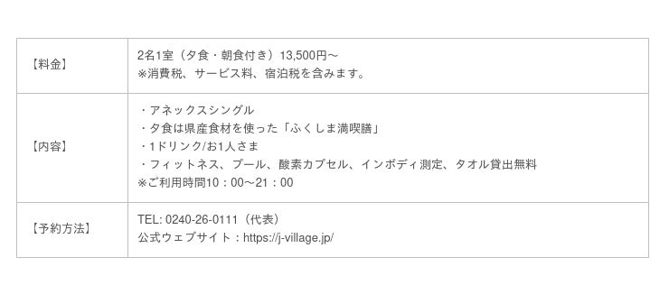 ※Jヴィレッジは平日限定プランとなっております。(火曜日~金曜日)