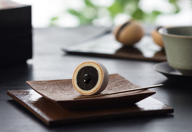 「ごまたまご」は黒ごまのペーストと黒ごま餡をカステラ生地で包んでホワイトチョコでコーティングした、かわいいたまご型のお菓子。4層からなる絶妙なハーモニーがお楽しみいただけます。