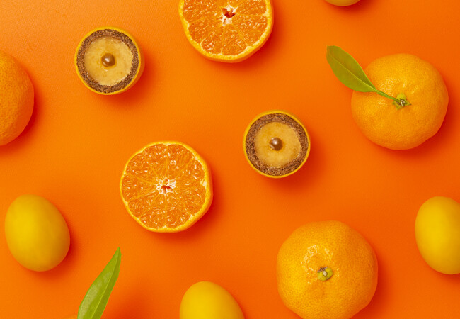 こだわりは、温州みかん特有のフレッシュな果実感と心地よい酸味、すっきりとした甘味を口に入れた瞬間感じていただけるような、濃密な味わいに仕立てることでした。袋を開けた瞬間に香り立つ爽やかな芳香にもこだわりました。国産の温州みかん果汁を炊き合わせたみずみずしい餡と温州みかんペーストを、相性の良いココアスポンジで甘味にキレを持たせ、ほのかにみかん香る鮮やかなオレンジ色のチョコでくるんで、見た目もみかんらしさを演出しました。オリジナルの餡、ペースト、スポンジ、チョコの調和が温州みかんの特徴を最大限に引き出しています。やさしい甘味と程よい酸味が特徴の国産温州みかん果汁を炊き合わせたみずみずしい餡と温州みかんペーストをココアスポンジで包んで、ほのかにみかん香る鮮やかなオレンジ色のチョコでたまご型に仕上げました。