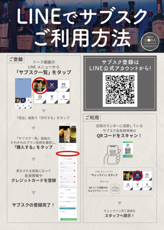 サブスクご利用方法:DORA LINE公式アカウントからサブスクのご利用が可能です。