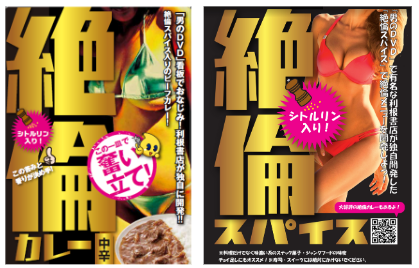 「絶倫カレー」「絶倫スパイス」を使ったメニューや菓子などのオリジナル絶倫食を提供