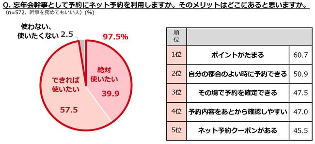 今年の忘年会予約には、ネット予約を使いたい幹事が97.5%。