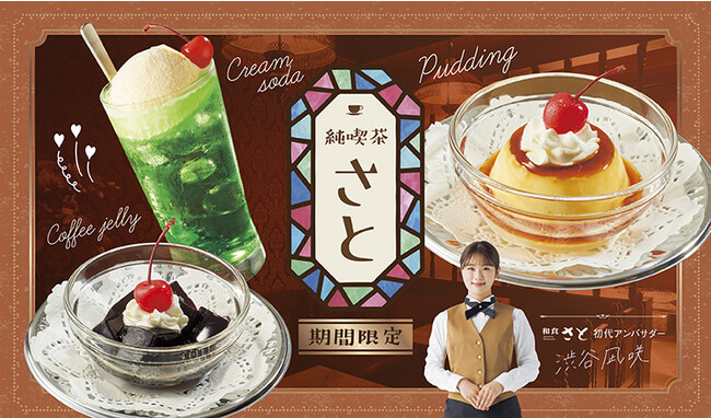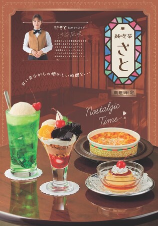 和食さとと渋谷凪咲さんのコラボ企画「純喫茶さと」の昔懐かしいデザートで、思い出話に花を咲かせたり写真を撮ったりなど、是非、和食さとのお店で楽しいひとときをお過ごしください。