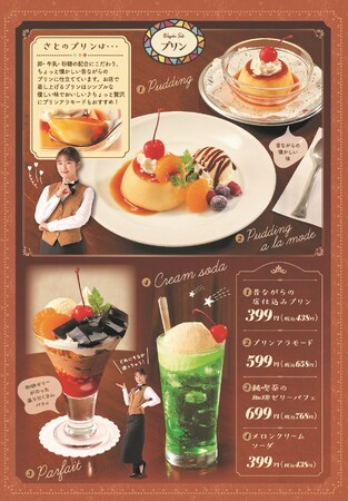 純喫茶の定番メニューのプリンは、「昔ながらの店仕込みプリン」399円(税込438円)と「プリンアラモード」 599円(税込658円)で販売します。