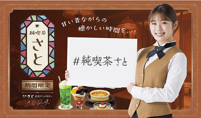 国内207店舗を展開する「和食さと」では、11月1日(火)から12月中旬までの期間限定で、初代アンバサダーNMB48渋谷凪咲さんとのコラボ企画『純喫茶さと』を開催します。