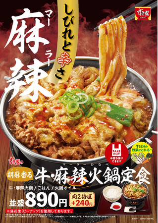 新発売の「牛・麻辣火鍋定食」は、唐辛子・豆板醤(トウバンジャン)・豆鼓醤(トウチジャン)がベースのしびれる辛さがやみつきになる冬にぴったりの一品です。辛味ベースの火鍋の素に、ピーナッツでコクを出した担々ゴマだれを足し、辛さの中にも濃厚な旨みが感じられるスープに仕上げました。別添えの“火鍋オイル”は、中国の代表的なスパイスである八角をはじめ、花椒やクミンが香り、お肉や野菜にスパイシーで華やかな風味をプラスします。お好みのタイミングで鍋に入れて、本格中華の風味と旨みをご堪能ください。ぜひこの機会に、お近くのすき家で、肌寒くなる季節に心温まる一品「牛すき鍋定食」「牛・麻辣火鍋定食」をお楽しみください!