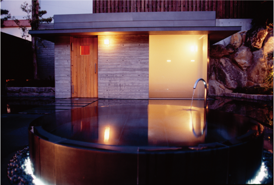 ミストサウナと水風呂、内湯と露天風呂を備えた湯殿「心晶」に、シリカ水と地元の無農薬レモンを使用したフィルターインボトルを持って入浴でき、サウナや入浴の合間の水分補給としてご利用いただけます。