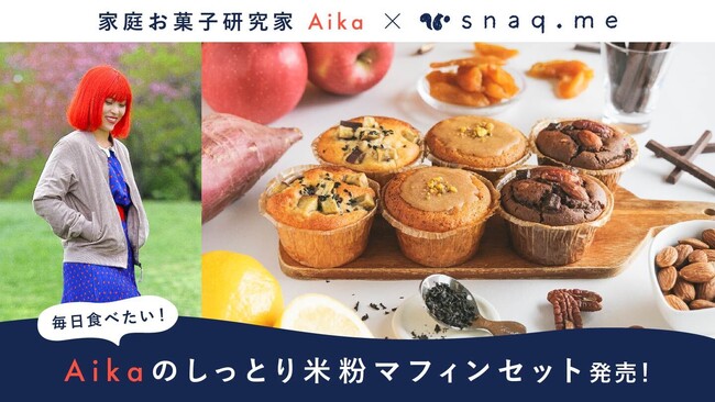 おやつのサブスクリプションサービス「snaq.me」を運営する、株式会社スナックミー (本社:東京都中央区 / 代表取締役:服部慎太郎)は、「お菓子作りをもっと身近に」をテーマとし、SNSを中心に活動する家庭お菓子研究家 Aikaさんとコラボレーションした「毎日食べたい!Aikaのしっとり米粉マフィンセット」を10月27日(木)よりオンラインストアで期間・数量限定販売を開始いたします。