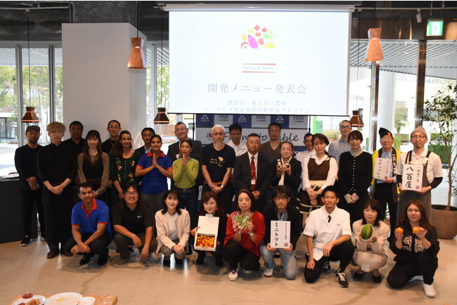今年7月31日に行われた飲食店・菓子店と農家のマッチング会には、日本料理やイタリアン、洋菓子など多彩なジャンルの飲食店など18店舗(昨年9)と22軒の農家(同16)が参加。飲食店・菓子店とメニュー開発のオファーを受けた農家がグループを組み、8月から、ほ場や店舗の見学、開発会議などを進めてきました。