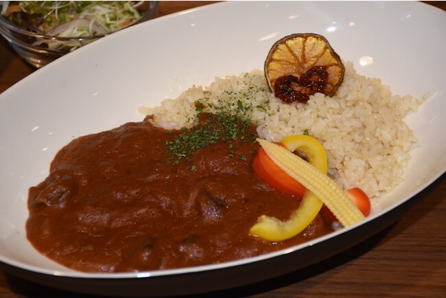 青果市場「大一青果」内でカレーと煮込み料理を出す「(C)?(マルシー)」(南島町)は、「アグリコ高糖度ミニトマトとヤマイシ果樹園みかんの牛スネ欧風カレー」(店内飲食1200円、持ち帰り 容器別 1179円)を発表。「ヤマイシ果樹園」は「ミカンというと静岡県の三ヶ日や蒲郡になりますが、豊橋にも昔からミカンはあるのでそれを知ってもらいたい。マルシーさんには、摘果から今の時期のミカンまで余すことなく食材を使っていただいているので、そこにも注目してほしい」と話し、「アグリコ」は「完熟割れしたトマトが実は一番甘くておいしい。それを今回カレーに煮込んでもらっているので、とてもトマトの味が出て、おいしくできていると思います。割れたトマトは廃棄しかないので、フードロスにも貢献した、とてもいいカレーができました」と語りました。