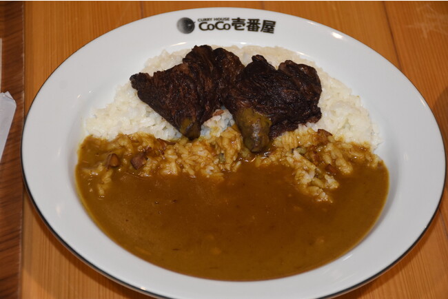 「カレーハウス CoCo壱番屋 豊橋前田店」(前田南町)は「みかわ牛の赤ワイン煮カレー」(1270円)。使用するみかわ牛の希少部位であるネックは肉質が硬い部分ですが、スプーンで解せるほどの柔らかさになっています。昭和24年創業の精肉店「ニクロハ」とのコラボになります。ニクロハは、「しっかりとしたボリューム感でみかわ牛をのせていただいているので、食べ応えもあります 。風味豊な肉のおいしさを味わってもらえると思います」と話しました。