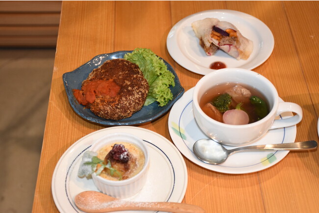 アジアンレストラン「アティティ」(浜道町)は、「畑のキャベツカレー」(925円)、「キャベツのチーズナン」(876円)、「畑のキャベツカレーset(青パパイヤのインド風漬物付き)」(990円)を考案。本場インドから輸入したスパイスを多数配合したドライカレーに、キャベツをたっぷり使うことで、カロリーは控えめになっています。「La.Aichi Farm」(青パパイヤ、キャベツ)は、「パパイヤには酵素がたくさんあり、とても体にいい成分が含まれていたりするので、ぜひ食べてほしい」と述べました。