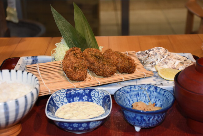 とんかつ和食の「武蔵総本店」(藤沢町)が作った「豊橋産大葉カキフライ定食」(1848円)は、豊橋が生産量日本一を誇る大葉を粉末にした「有限会社 州田園」の大葉粉を衣に混ぜました。タルタルソースにも大葉胡椒が入った大人な味わいで、爽やかな大葉の香りが食欲をそそる一品です。「粉末状で使いやすい。今回は牡蠣と合わせたが、それ以外にもまだまだ使える。今後もメニューを開発していきたいと思っています」(武蔵総本店)、「うちは50年以上続く大葉農家です。大葉も粉になったからこそできることがあると思うので、この先、もっといろんな方向に広がってくれたらうれしいです」(州田園)と語りました。