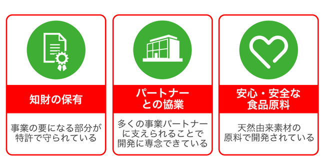 FULLLIFEの強みは、イチゴポリフェノールを活用した技術で特許(特許第5603088号)を取得していることで、知財を守り競合優位性を保つことができ、長期的に安定したビジネス戦略を構築できる点にあります。