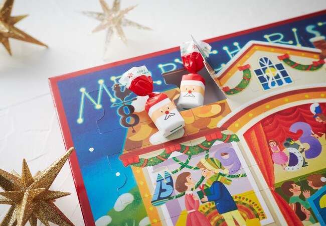ミルクチョコレートやストロベリーチョコレートが入った窓を毎日ひとつずつ開けながら、クリスマスをわくわくと待つ毎年人気のアドベントカレンダーです。