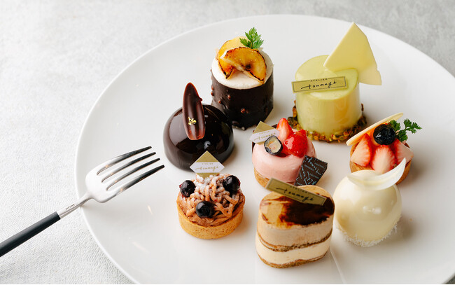 その中でも注力している商品群は、小さなお菓子“ミニャルディーズ”です。栗とカシスを盛り付けた「カシス マロン」やバナナにチョコを合わせた「ショコラ バナーヌ」など、一口サイズで8種を用意。旬を迎えた素材の美味しさとともに、パティシエの技術とセンスがコンパクトに詰め込まれており、色鮮やかな見た目に心も躍ります。ミニャルディーズのラインアップは季節で変わりますので、旬のスイーツを少しずつ存分にお楽しみいただけます。