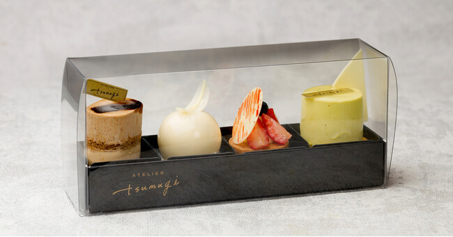 「Atelier Tsumugi」は、チョコレート専門店「Chocolaterie Tsumugi (ショコラトリーツムギ、松山市二番町3丁目7番地12)」を手がける亀田将太がシェフパティシエを務めるスイーツ店。Chocolaterie Tsumugi では愛媛県内産食材とチョコレートを紡ぎ、愛媛が誇る豊かな食をチョコレートで表現しました。Atelier Tsumugiではその領域をスイーツ全般にまで範囲を広げます。卵や小麦粉はもちろん、フルーツなどの食材も積極的に県内で探し、厳選を重ねたものを使用します。その季節に美味しいものを適する製法で形づくりながら、生ケーキや焼き菓子といったスイーツで愛媛の魅力を発信します。