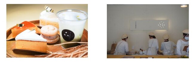 「おこめの菓子店」は、国内のパティスリーやフランスに渡り腕を磨いたパティシエがつくる鹿児島県産のお米を使用した和洋菓子専門店で、2022年4月に鹿児島県日置市にテイクアウト専門店としてオープン、イートイン店舗としては今回が初出店となります。本店が所在している日置市を盛り上げたいという思いやグルテンフリーを重要視するお客様にも寄り添えるお店になりたいという思いから、日置米を使ったお菓子を中心としています。「お米ピューレ」を挟んだふんわり生地のブッセ「ふんわりおこめ」をはじめ、日置産の茶葉を使用したオリジナルドリンク、さらにはオープンに向けて開発中の新メニューなど、和の素材を使用し、洋の技術で仕上げたスイーツの数々をご提供します。