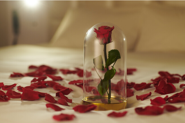 イミテーションの花びらで彩る“ベッドデコレーション”と、童話にも登場するドーム型ガラスケースに入ったバラをイメージした“ローズドーム”をセットにしたロマンチックなクリスマス限定の装飾プラン。