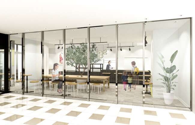 美味しいブレッド「BREAD」とコーヒー豆「BEAN」のマリアージュを、お客様に楽しんでいただきたい想いを込め命名された「BREAD & BEAN」。頭文字の2つの“B”を2乗して、「B²(ビースクエアード)」という名前になりました。B²のロゴはボールドで角ばったインダストリアルシェイプの「B」に、 パンの柔らかさとコーヒー豆の丸みを帯びた可愛いシェイプを加えデザインされました。