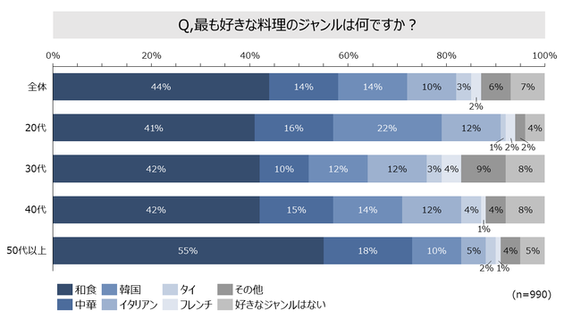 「最も好きな料理のジャンルは何ですか?」とアンケートした結果、1位は「和食」でした。