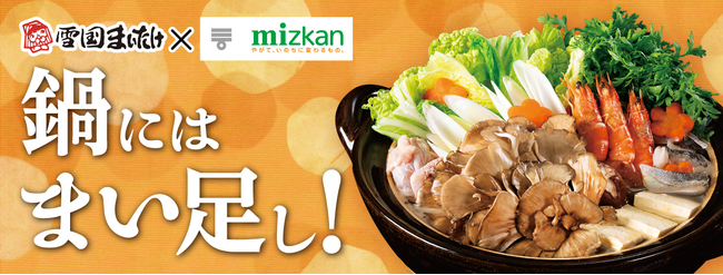 株式会社雪国まいたけ(本社:新潟県南魚沼市 代表取締役社長:湯澤尚史)は、近年高まる〆需要に合わせて、11月上旬より、店頭にて株式会社Mizkan(本社:愛知県半田市、代表取締役社長兼CEO:吉永 智征、以下:ミツカン)とのコラボにより、『雪国まいたけ極(きわみ)』と、『ミツカン 〆まで美味しい™鍋つゆ』を活用した、「鍋にはまい足し!」を提案する共同販促施策を展開致します。