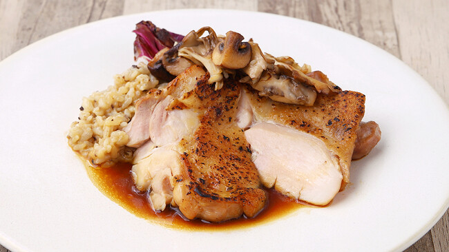 ・備中高原鶏もも肉のロースト きのこのリゾット添え(写真)