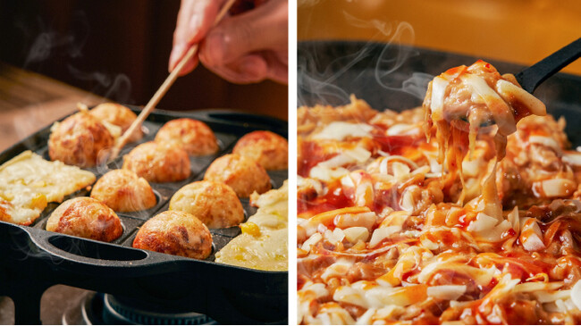 お席で作って楽しめる、大人気のたこ焼き&もんじゃ焼き!