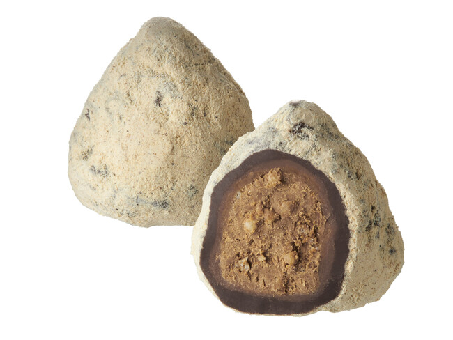 ナッツのような風味香るベネズエラ産カカオを使った、ミルクチョコ レートムースを、伝統的なミルクチョコレートで包み、アーモンド スライスと香ばしいカカオニブで飾ったひと粒です。