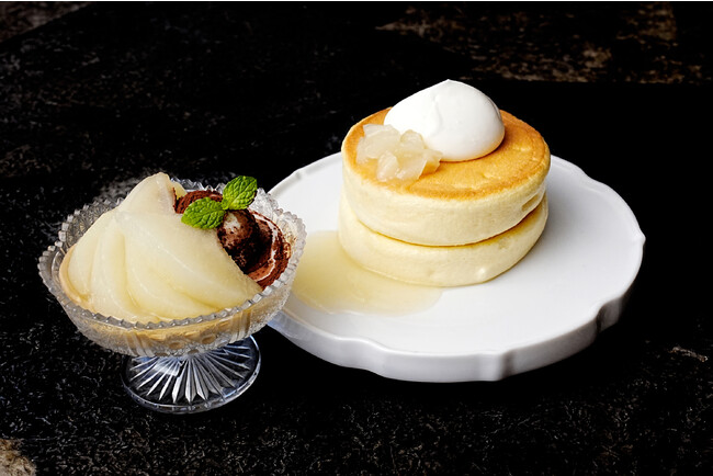 無添加ぷるぷるほっとけーきに甘酸っぱいレモンと洋梨ソースでスッキリとした味わいを楽しんだあと、ティラミスに見立てた濃厚北海道マスカルポーネクリームにバニラ風味の洋梨のコンポートと北海道牛乳ジェラートで満足感を感じていただけます。