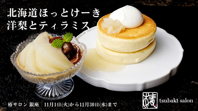株式会社クロコ(本社:東京都中央区、代表取締役:大和田大地)が運営する無添加ぷるぷる北海道ほっとけーき「椿サロン(銀座)」では、11月1日(火)から11月30日(水)までの期間限定で、爽やかなレモンと洋梨ソース、濃厚北海道マスカルポーネクリームが堪能できる「北海道ほっとけーき 洋梨とティラミス」を提供いたします。