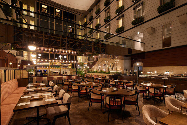 コンセプトは「新しい上質感に出会える 心おどる“オアシス”」。エントランスを抜けてロビー階に進むと、木漏れ日のような陽光が差し込むアトリウムが広がります。全99室の客室と、400名規模の宴会場を備え、レストランでは季節の野菜を楽しむブッフェや、アフタヌーンティーを提供します。お客様の多様なニーズにお応えするホテルです。