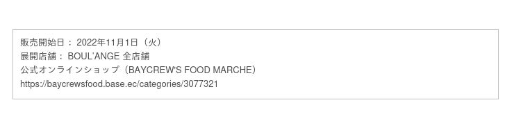 株式会社ベイクルーズ(本社: 東京都渋谷区、取締役CEO: 杉村 茂)が運営する、オリジナルブーランジェリー「BOUL’ANGE(ブール アンジュ)」は、ワインが美味しい季節に向けた新作を11月1日(火)より販売開始いたします。