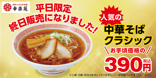 ■「中華そばクラシック」平日限定販売について