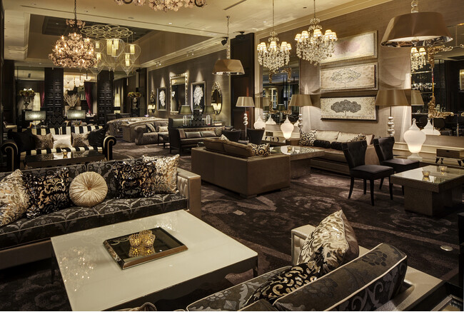 上質なインテリアの中にゆったりとお掛けいただけるソファ席を配した華やかな店内では、見た目にも鮮やかな美食を提供します。一角に設けられたデザート工房「アトリエ・デセール」で仕上げられるアフタヌーンティーやパフェ、パンケーキなどのスイーツの他、サンドイッチやハンバーガー、各種御膳など、軽食からしっかりしたお食事までさまざまな用途に対応できるバラエティ豊かなメニューをご用意しております。各種アルコールも取り揃えておりますので、夜はバーラウンジとしてもお楽しみいただけます。