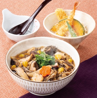 鶏肉としいたけのきのこそばと小天丼膳