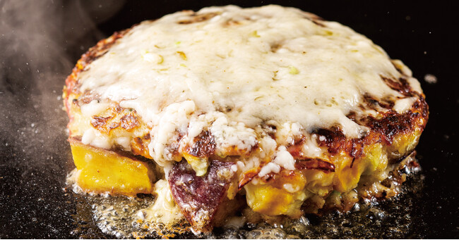 チーズやバターフレーバーを使用した、「洋風な味わい」の「山芋お好み焼き」!